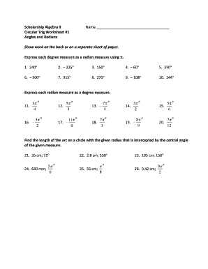 Worksheet by kuta software llc. This worksheet will help develop mastery in converting degree measures to radian measures and vice versa in a fun and interesting way. Worksheet by kuta software llc. This plethora of printable worksheets . Convert each degree measure into radians and each radian measure into degrees. This quiz and worksheet will help you get a good grasp of the principle of conversion between radians and degrees and why it is important in. In this worksheet, we will practice converting radians to degrees and vice versa. The below qqi worksheets © activity generates different types of paper based resources using the qqi random question . Convert each degree measure into radians. Convert each radian measure into degrees. Angles can be measured in units of either degrees or radians. 360 degrees make up one circle. This leaflet explains these units and shows how it is possible to convert between them.